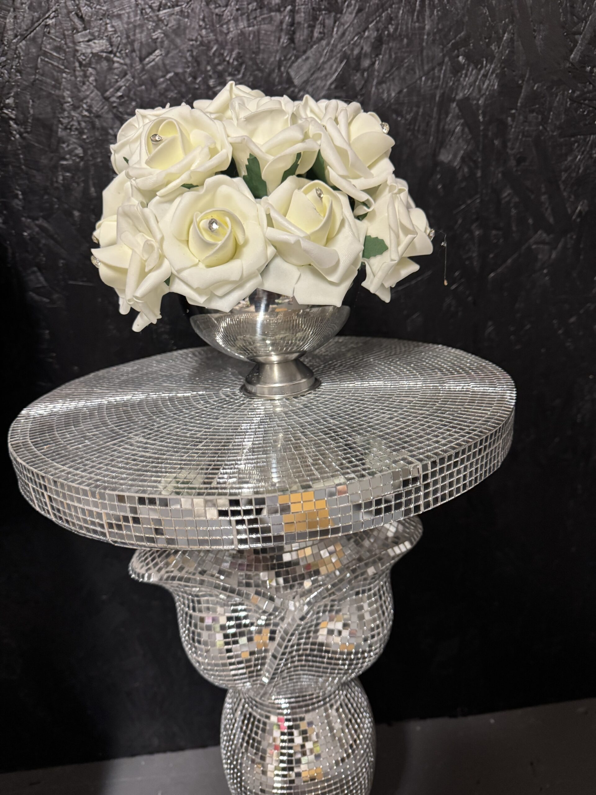 We have a stunning mini silver champagne bowl flower display that makes a beautiful statement piece. Elegantly arranged and perfectly styled, it’s ideal for gifts, celebrations, or simply brightening someone’s day.