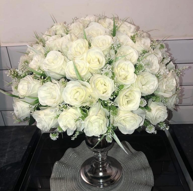 96 roses with silver vase